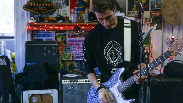 Photo of The Wayward Strangers’ rehearsal studio space, courtesy the band’s website.